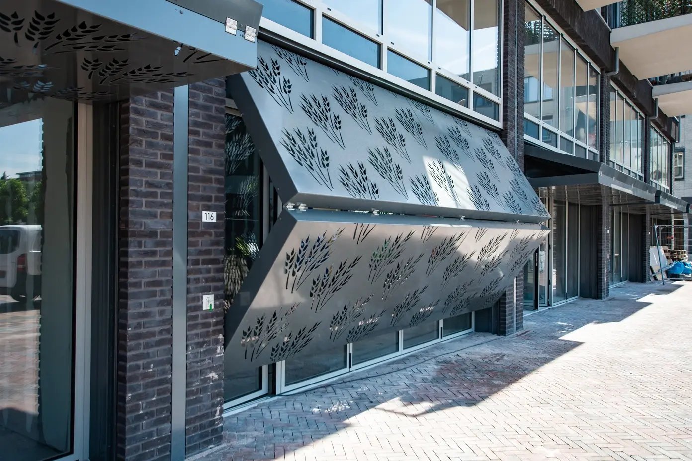 De vouwpanelen zijn voorzien van een korenhalm motief, wat de verbinding met Heerhugowaard nog sterker maakt. De korenhalm is namelijk onderdeel van het wapen van Heerhugowaard.